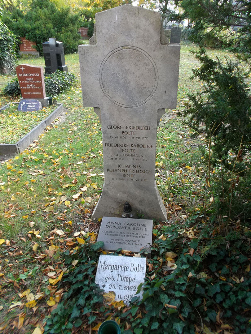 Beseitigung der Grabstätte Johannes Boltes stießen wir bei unseren Recherchen zudem auf die Mitteilung, dass, neben der Frau Boltes, auch seine Tochter Dorothea